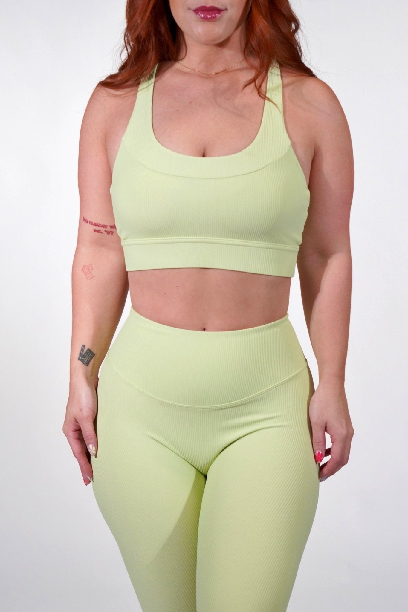 Model wears size small-Ribbed fabric-Compression technology-Quick dry technology-Padded Bra (Removable)